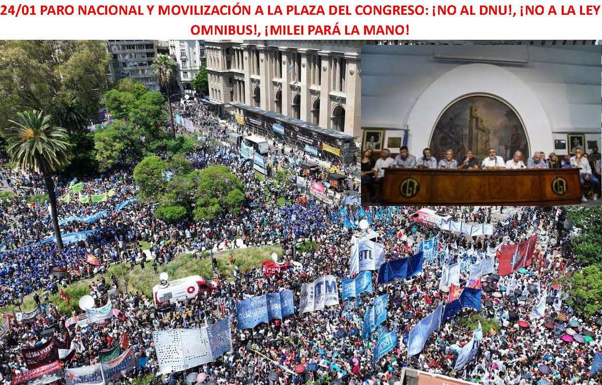 ·        Oponernos en las calles a la política de hambre de Milei es un desafío que comenzó a abordarse en las últimas semanas con la marcha de la CGT, CTA y organizaciones sociales a la plaza de Tribunales, los cacerolazos en numerosas ciudades del país, la aparición de Asambleas de vecinos por barrios, la convocatoria a plenarios abiertos por parte de los intendentes del conurbano  y el paro y la movilización convocada el 24/01. Pero el desafío es no solo movilizar sino dejar en claro que los que nos planteamos resistir el avance de la revolución libertaria no somos defensores del statu quo vigente